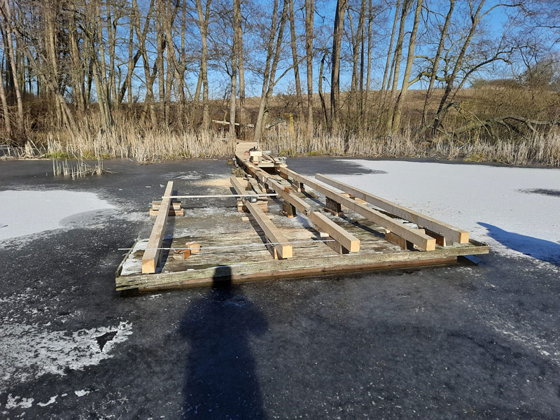 Anfang Februar konnten wir in einer kurzen Frostphase Stege am Glasower See reparieren.